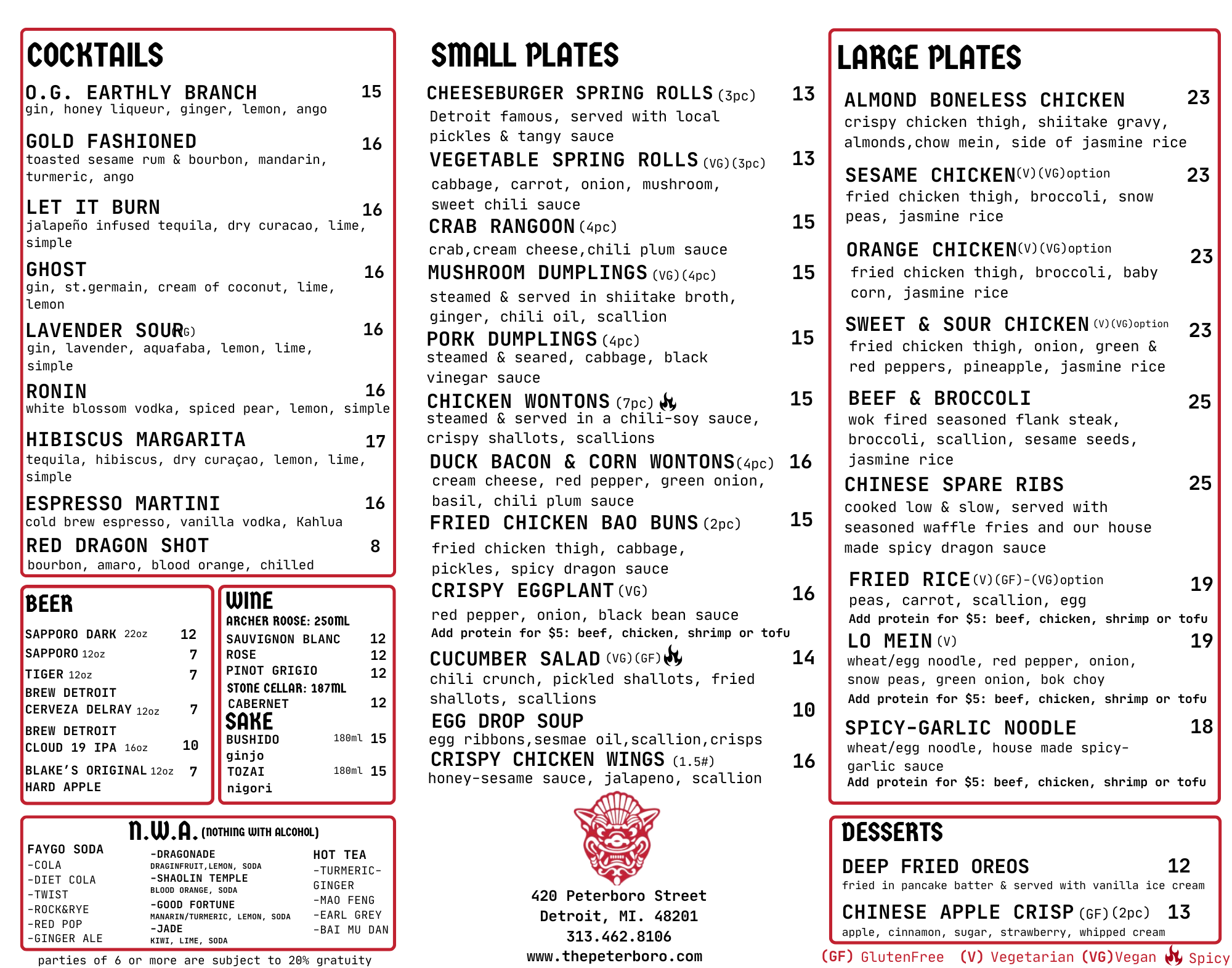 Due to fraudulent orders by phone, we only accept carry out orders online or in person, in the restaurant.